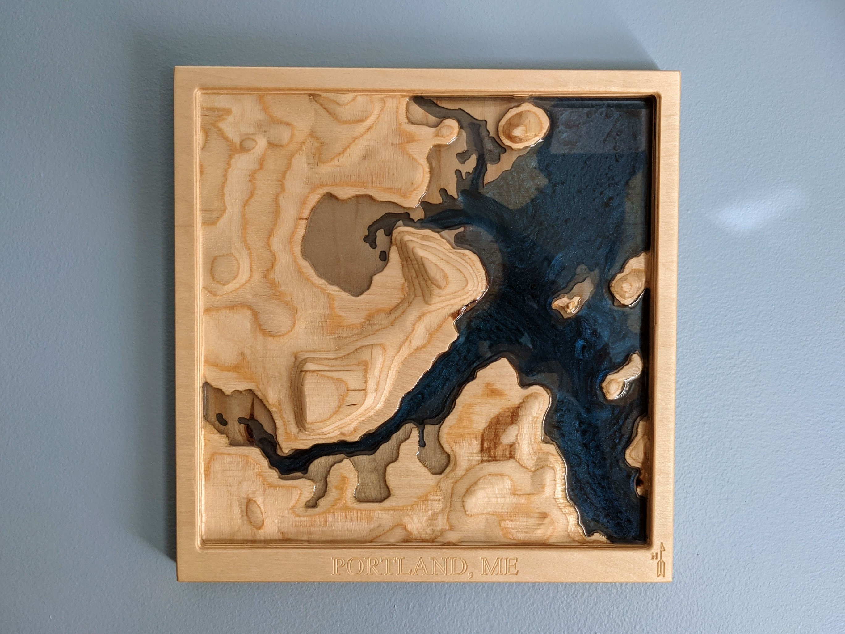 A Wooden Laser Cut Topo Map of Portland, ME – The Shamblog
